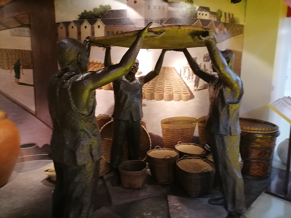 看著這一幅幅古樸的畫卷,協(xié)會成員似乎一下子又回到了清朝的那個時刻。這里的很多場景都是真實(shí)還原當(dāng)時的勞動場面,對于醬油的傳統(tǒng)壓榨方法進(jìn)行了情景再現(xiàn)。讓成員們更加印象深刻的去了解古代醬油從黃豆到醬油成品,再到雜貨店出售的全過程。海天現(xiàn)在的工藝和以前都一樣,只不過以前是靠人工,現(xiàn)在更多的是靠科技,時代在進(jìn)步,殊途同歸,醬油的味道更醇厚。