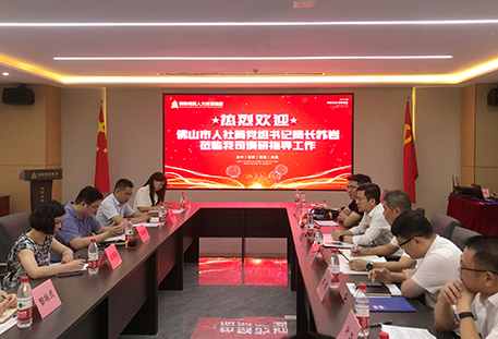 2023年8月10日下午在公司會議室,佛山市人力資源社會保障局黨組書記局長蘇巖率領市區(qū)鎮(zhèn)街人社部門領導蒞臨我司出席調研指導工作會