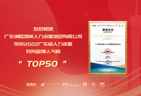 熱烈祝賀廣東洲際領(lǐng)英人力資源集團(tuán)有限公司榮獲2022廣東省人力資源勞務(wù)品牌"Top50"